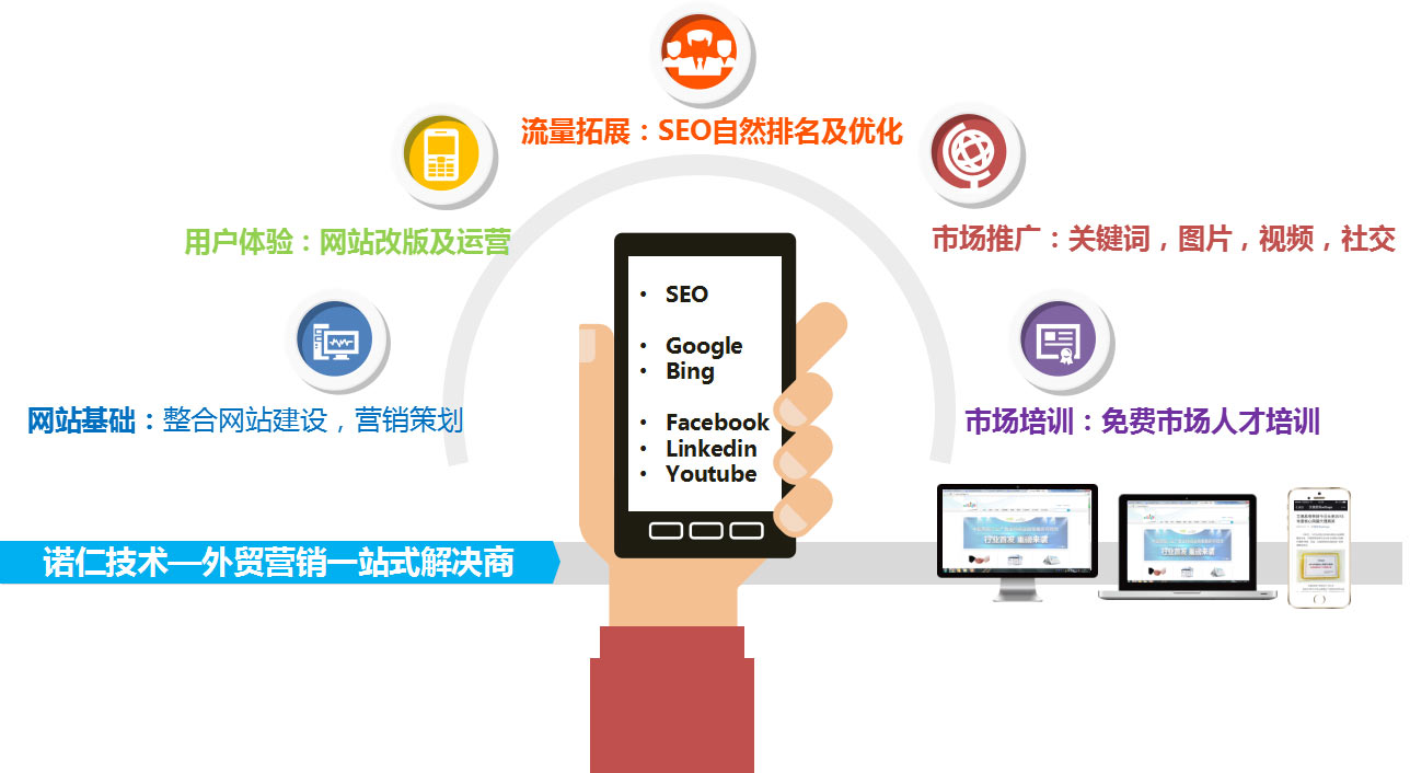 技术衔接部份:网站制作及改版、产品页面、询盘通道布局。